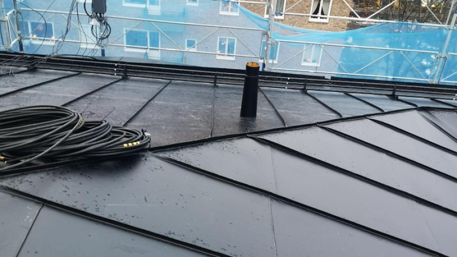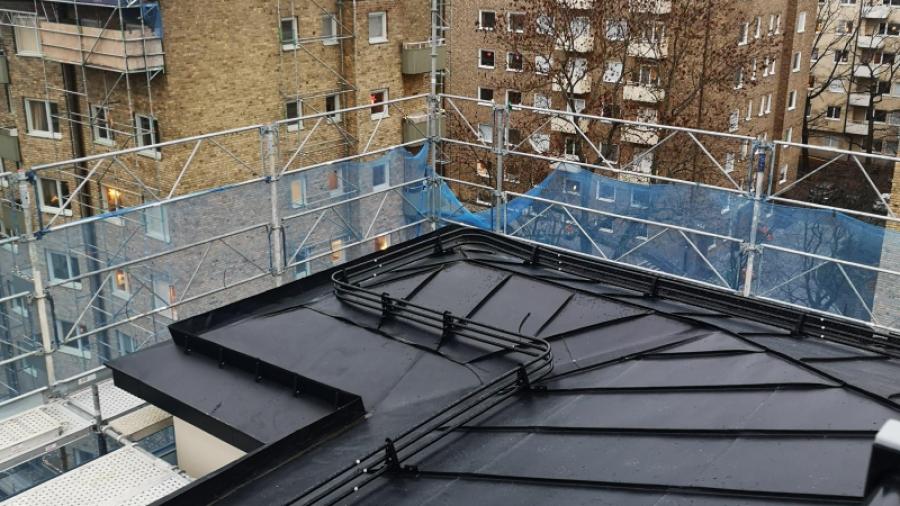 Nu är takomläggningen och igensättning av piskbalkongen klar.